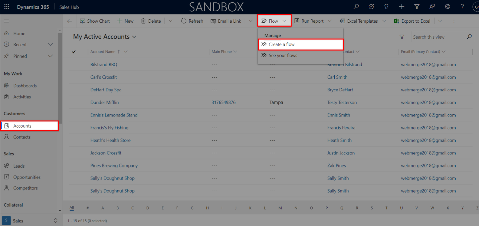 Log into your Microsoft Dynamics account and go to the entity that you’d like to create your documents from (ie. Account, Contact, Opportunity...etc). In our example, we are going to do this from the Account entity.