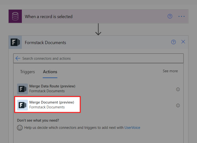 After we’ve authenticated our Formstack Documents account, Power Automate is going to load a list of the documents in our Formstack Documents account.