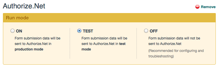 Run a test payment using the Authorize.net integration’s “Test Mode” which requires Authorize.net sandbox credentials.
