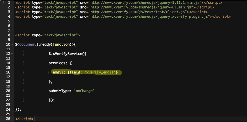 The code provided will need a slight modification. By default the code references email: {field: ‘xverify_email’} but to work with Formstack we will need to change that to say email: { field: ‘fsFormatEmail’ }