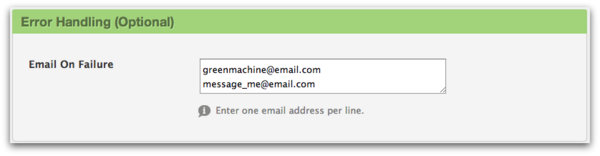 The last option available when setting up the Salesforce integration is an "Email On Failure" option. This allows you to insert your email and/or those on your team so that you will be notified if a submission fails to post to Salesforce due to a Salesforce related error. When this happens, you will receive an email notifying you of the issue and a brief description of the error in question.