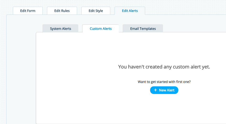 Custom alerts can be created for any successful submission. To create a Custom Alert, navigate to the Edit Alerts section of your form. Click "New Alert."