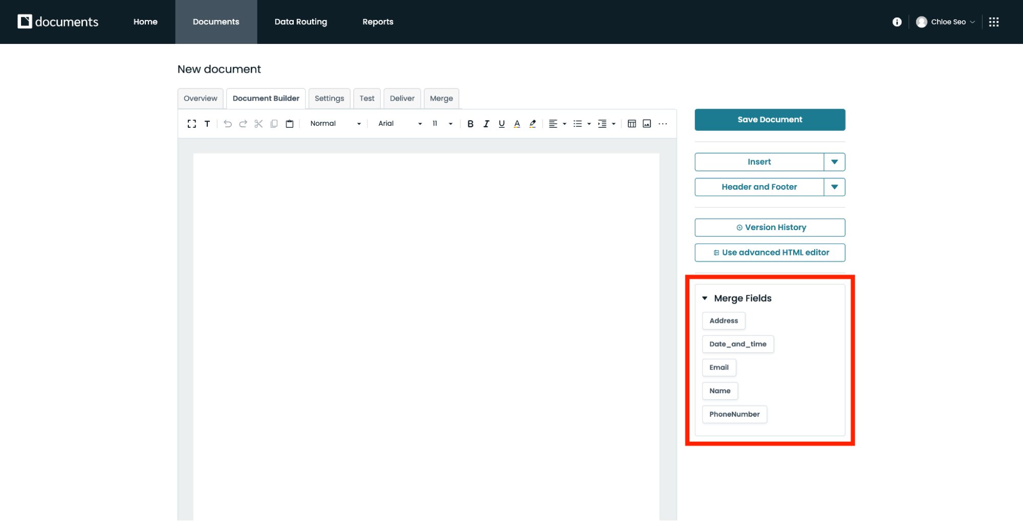 Formstack has a way to expedite the template creation process by automatically including the most popular merge fields while in the builder. Simply drag and drop the merge fields from the right to left when you see the ones you'd like to place on your template.