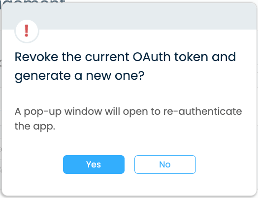 - The pop-up will inform you that the old token will be revoked and a new one will be generated.