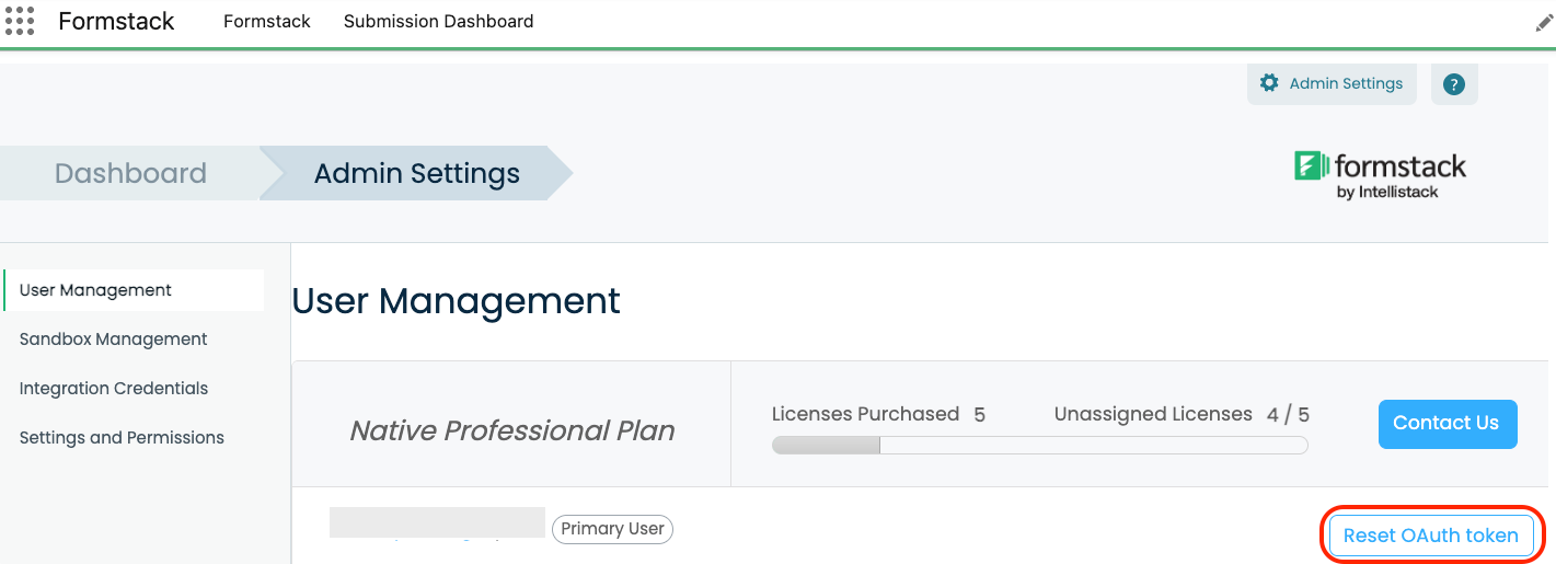 - Locate the Reset OAuth Token button.