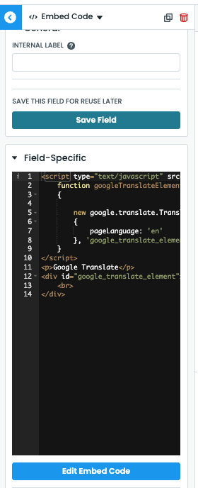 To prevent accidental or unauthorized changes to scripts on payment-enabled forms, the JavaScript editor in the left-hand navigation is locked as read-only. To change the contents of the Embed Code, the user must launch the code editor screen.