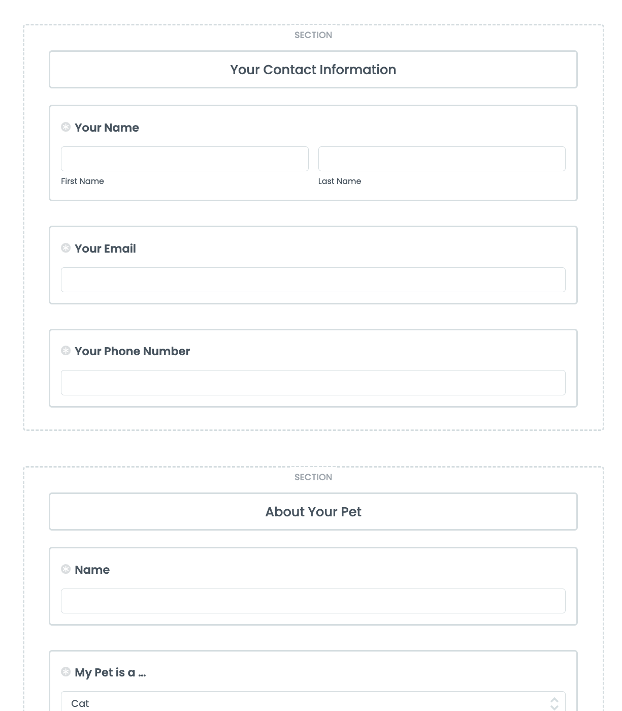 Use Sections to break long forms into pages or logical groups. Give sections and fields clear, descriptive labels. Make sure the structure makes sense when read in order.